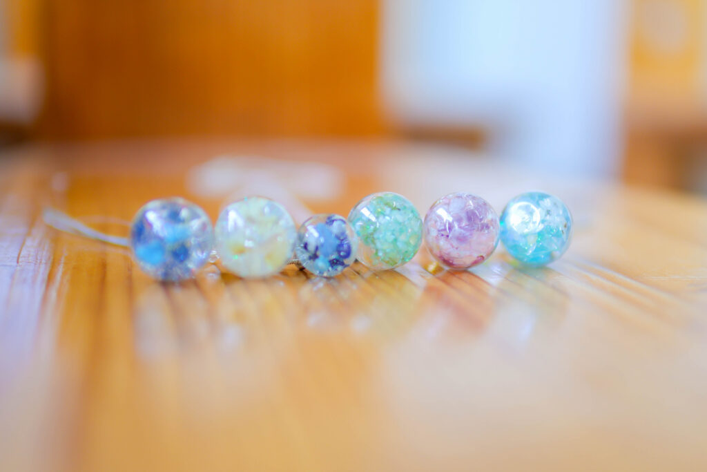 ガラスの中に閉じ込められた鮮やかな模様や、光を受けてキラキラと輝く透明感は、一つひとつが芸術作品のよう。