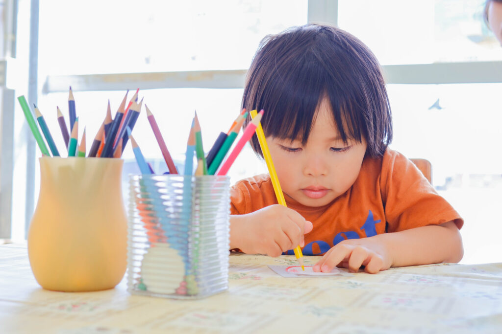 用意された下絵の中から好きなデザインを選んで、カラフルなペンで自由に色付けします。