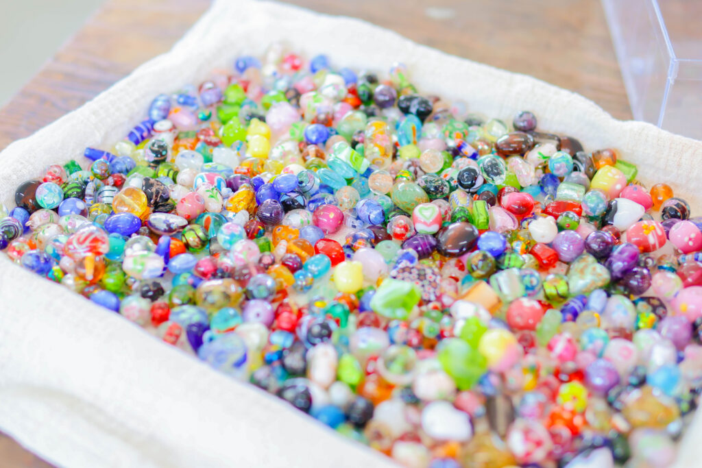 たくさんのトンボ玉の中から、お気に入りの色や柄を選ぶ時間も楽しみの一つです。