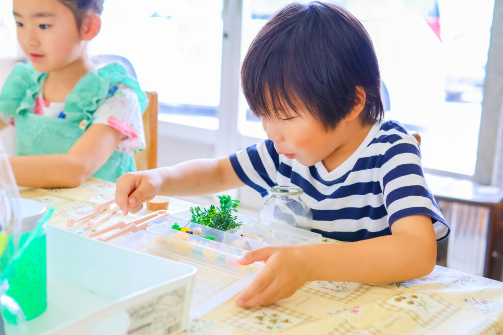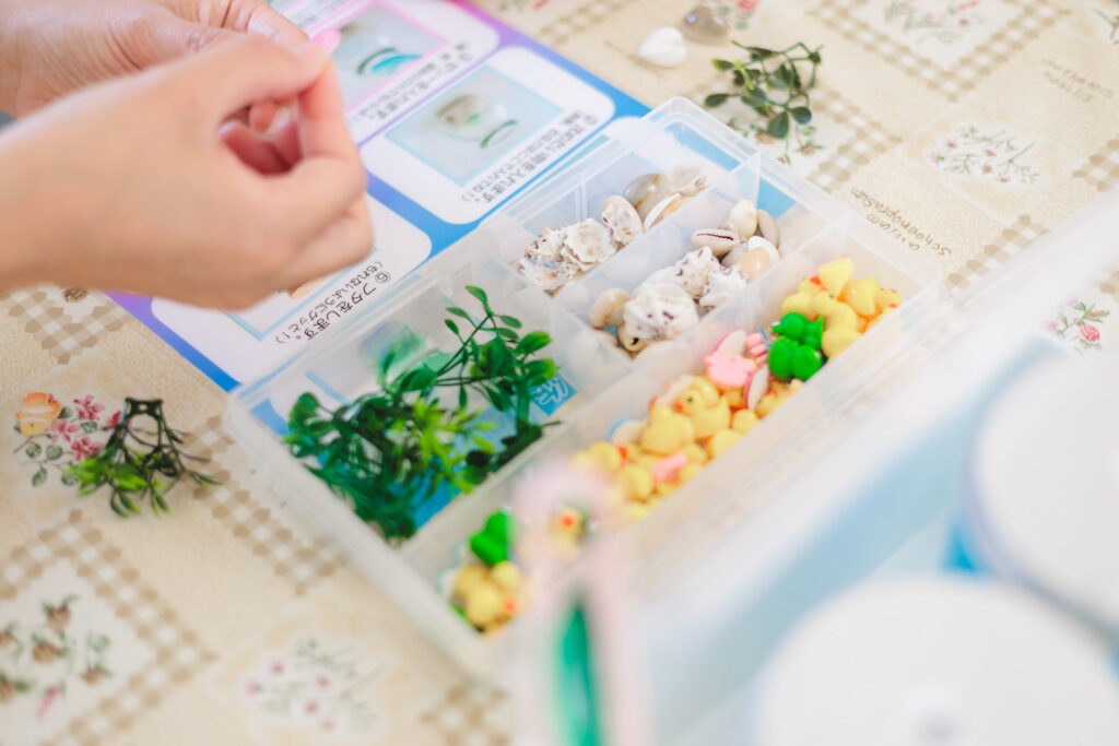 | 体験内容 | 貝殻やビーズなど豊富な素材の中お好きな小物を選び、かわいい小瓶を作ります。 |