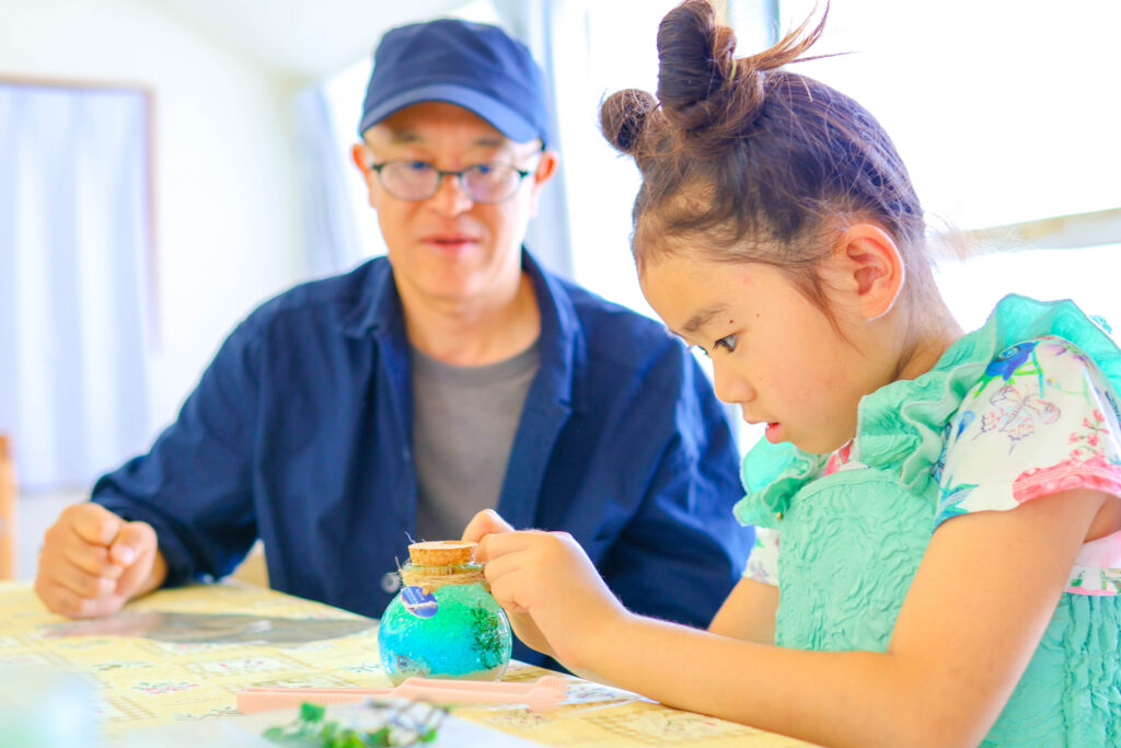 また、貝殻を使った「マリンボトル」や色とりどりの「トンボ玉アクセサリー」など、小さなお子様でも気軽に楽しめる体験メニューも充実!