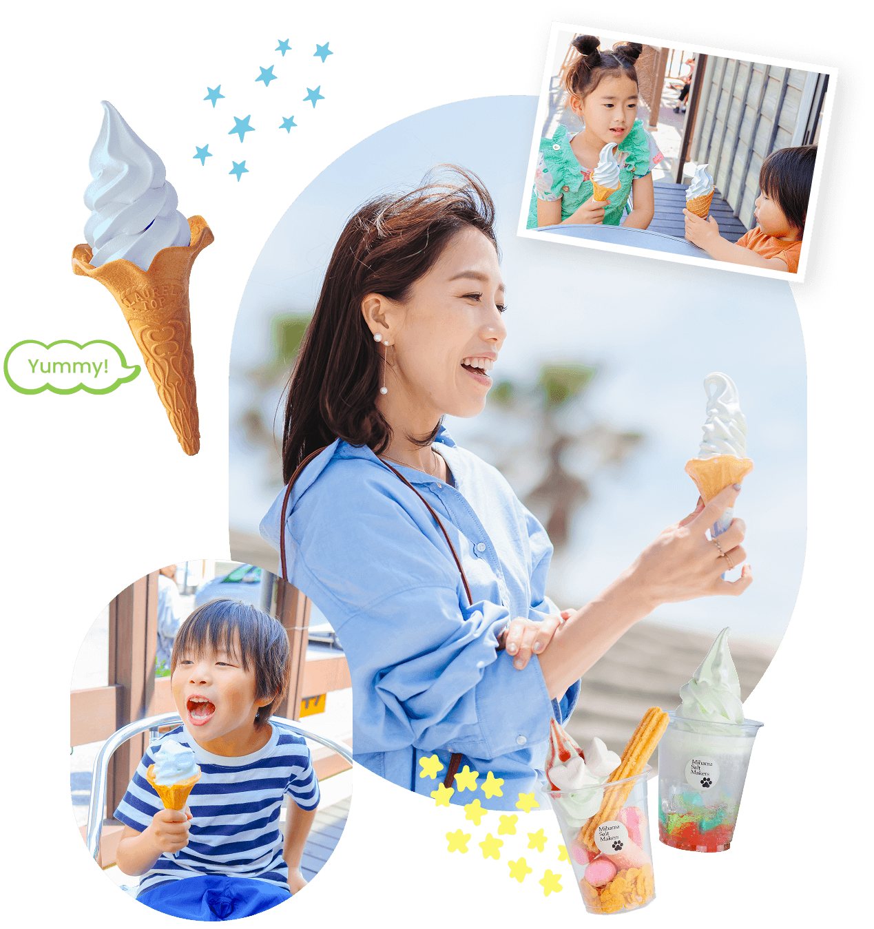 他では味わえない水色のソフトクリームが大人気!程よく塩が効いた独特の味わいで、バニラのように真っ白ではなく、少し青みがかった見た目が印象的。