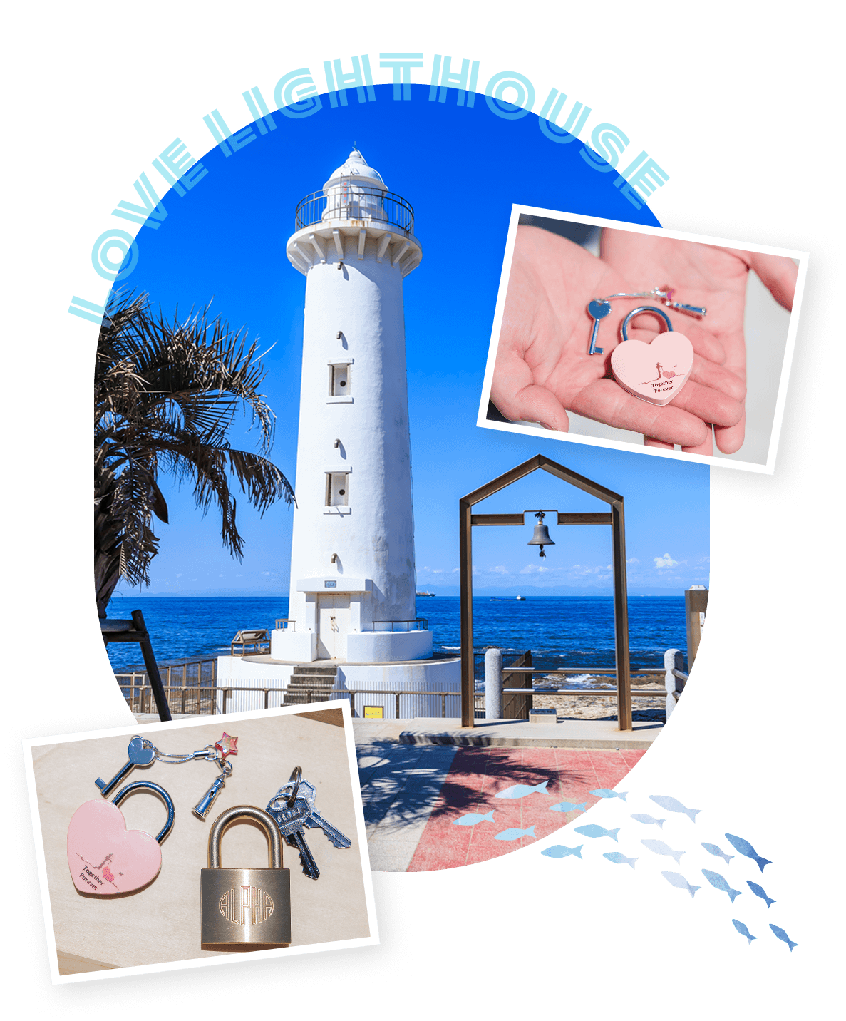 「恋する灯台」に認定された野間埼灯台とのコラボレーションにより、カップル向け観光ルートの一部として機能しています。永遠の愛を誓う白亜の灯台で愛をロックするための南京錠を購入できる貴重なスポットとして、多くのカップルが訪れています。