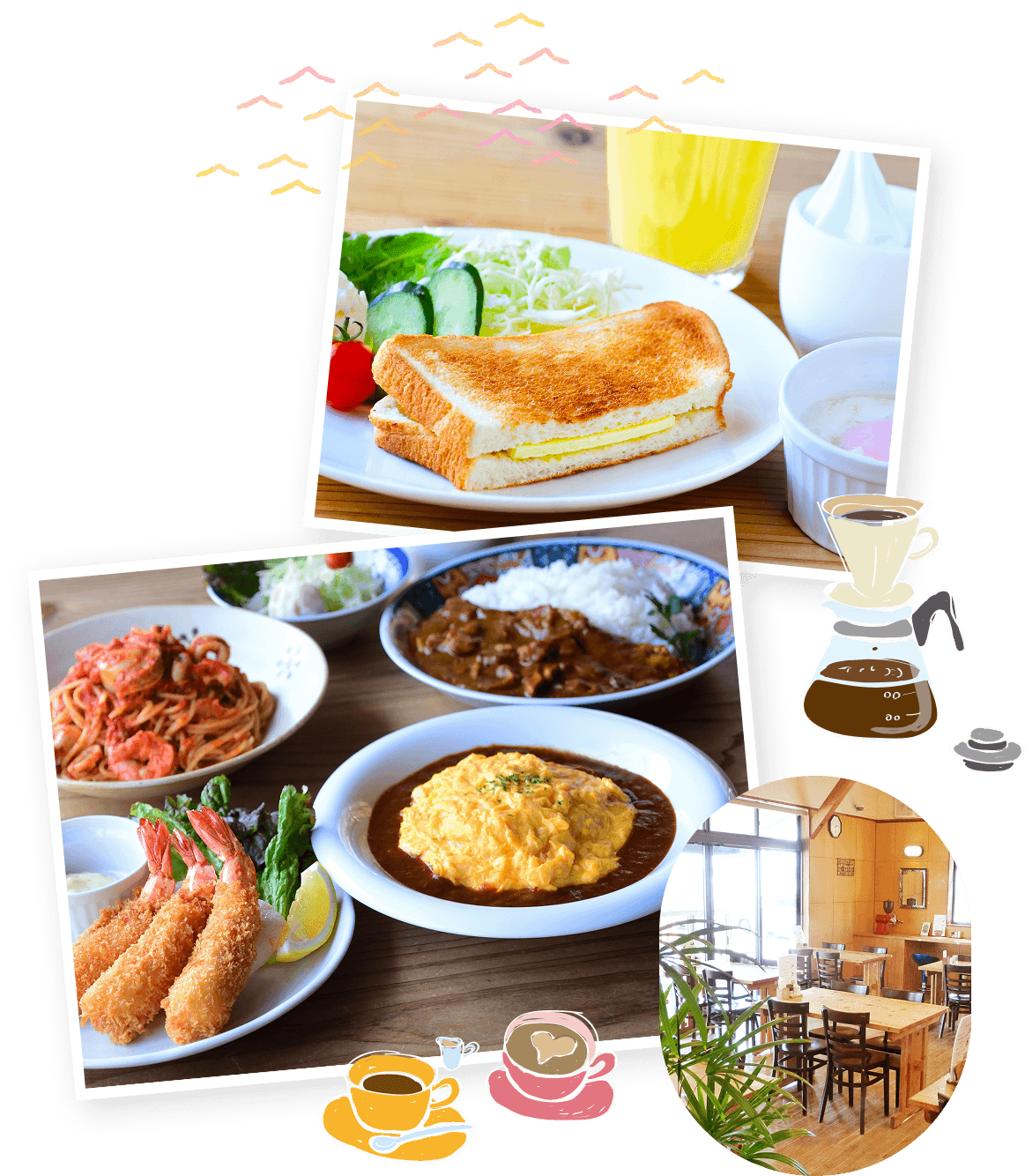 地元の食材を使った料理や季節感たっぷりのランチメニューも充実しており、知多半島の南部に位置する自然いっぱいの美浜町で育まれた新鮮な特産物・農産物を活かした絶品グルメが楽しめます。海を眺めながらの食事タイムは格別ですよ!