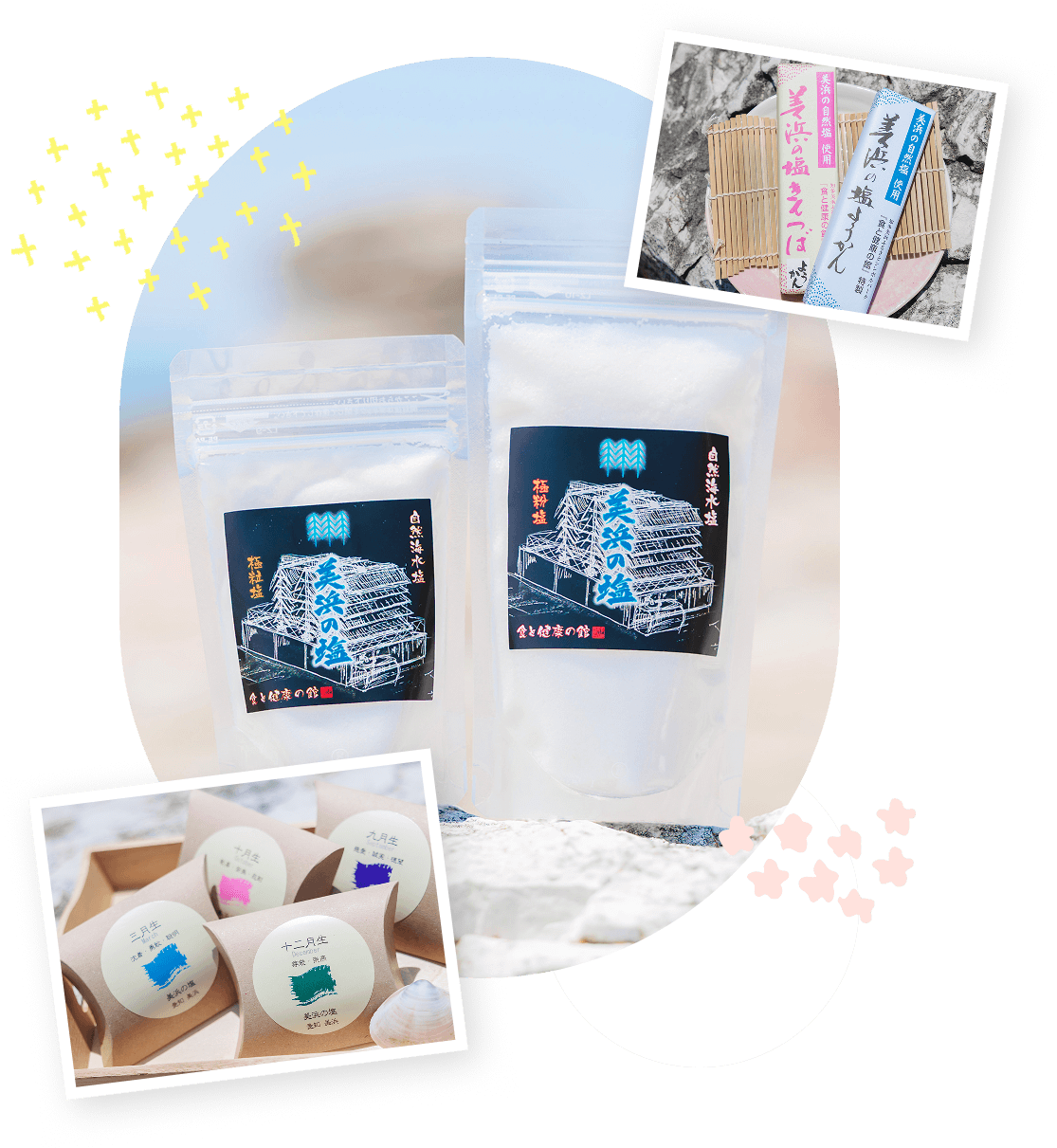 「美浜の塩」や「美浜の塩ようかん」「はちみつれもん塩飴」など、旅の思い出としてご購入いただき、お気に召す商品がありましたら、ぜひオンラインストアをご活用くださいませ!