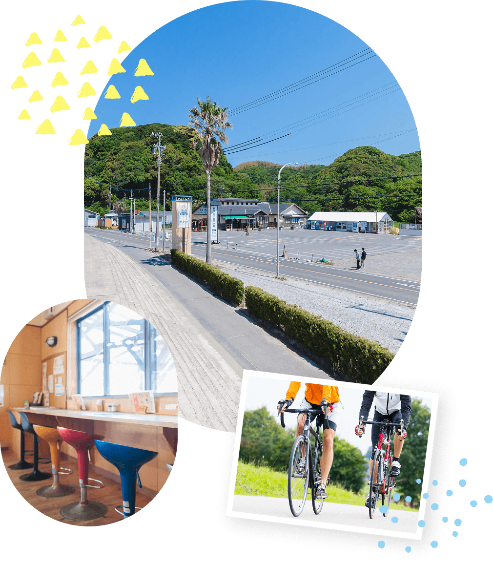 専用バイクスタンドでの安心駐輪はもちろん、海を眺めながらのお食事や休憩で、サイクリングの疲れを癒し、次への活力をチャージできる理想的な休憩地です。